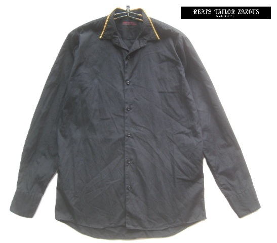 - 美品日本製!!リーツテイラーザズー REATS TAILOR ZAZOUS*美シルエット ラインデザイン 立ち襟コットンシャツ 実寸M 黒 ブラック