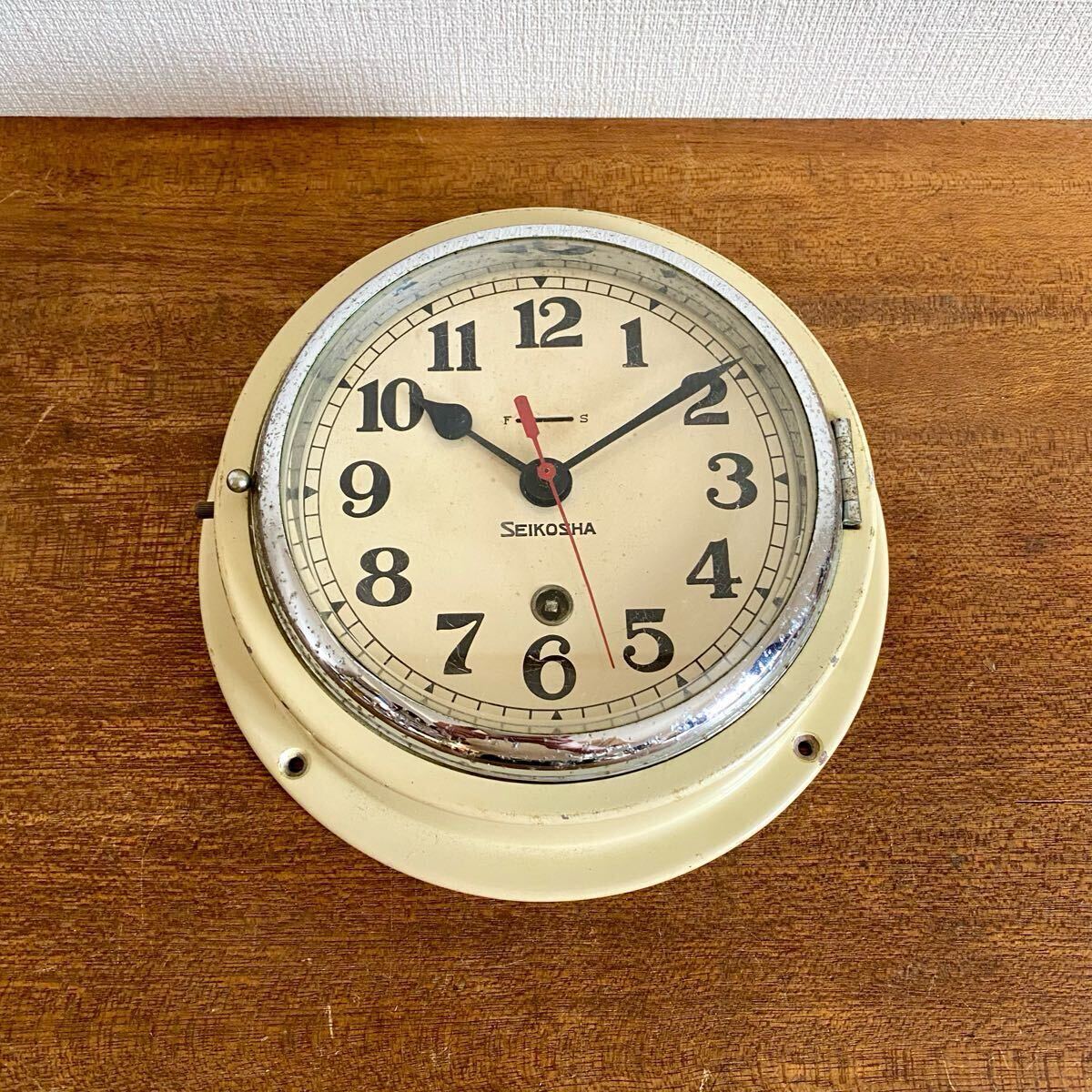 - 【動作品】 アンティーク 精工舎 SEIKOSHA 船舶時計 / 船時計 壁掛け ゼンマイ式 手巻き式 当時物 昭和レトロ