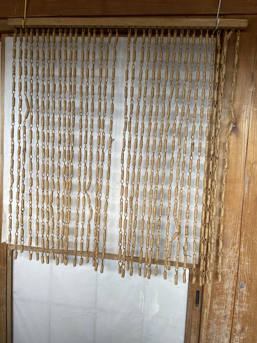 - 珠のれん すだれ ベージュ色のうずまきデザイン 幅85㎝ 丈93㎝ 昭和レトロ(訳あり)