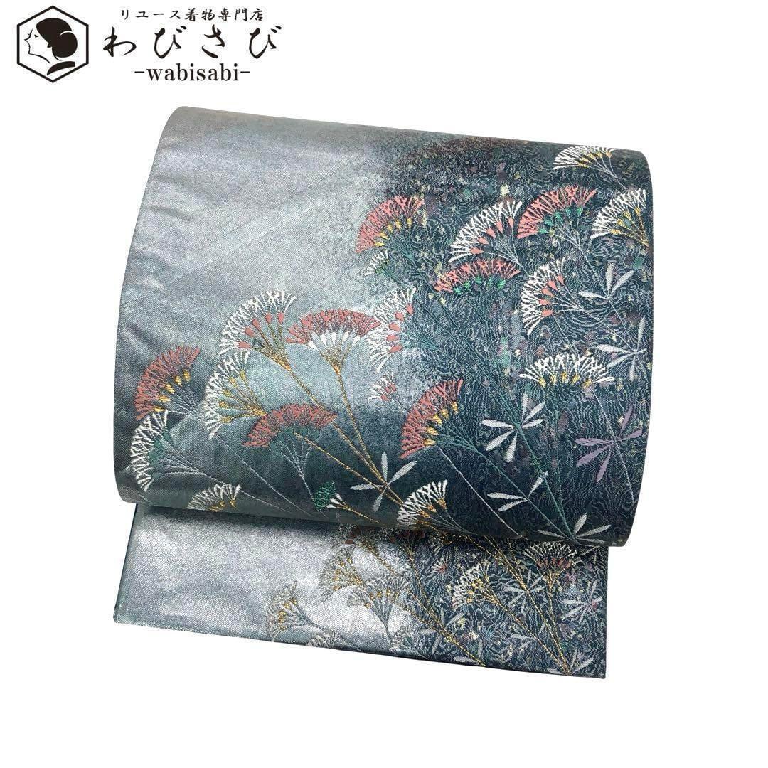 > 袋帯 西陣 高島織物 繻珍織 青銅箔 花草模様 金銀糸 O-3279 着物 きもの kimono 和服 和装 中古 リサイクル着物 【送料無料】