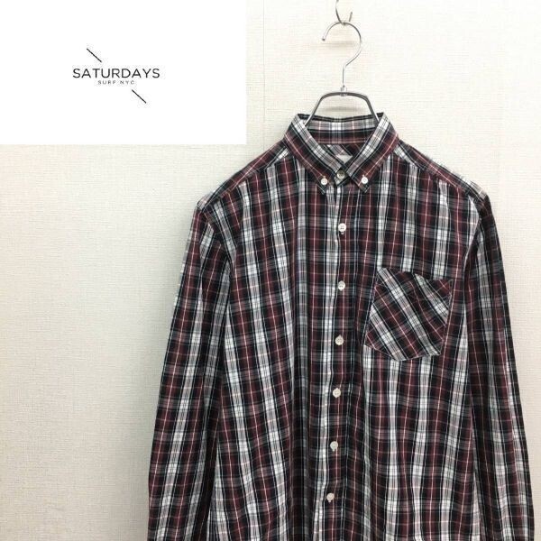 - HZ9150★SATURDAYS SURF チェック柄ボタンダウンシャツ★S★ワイン/黒/白 サタデーズサーフ