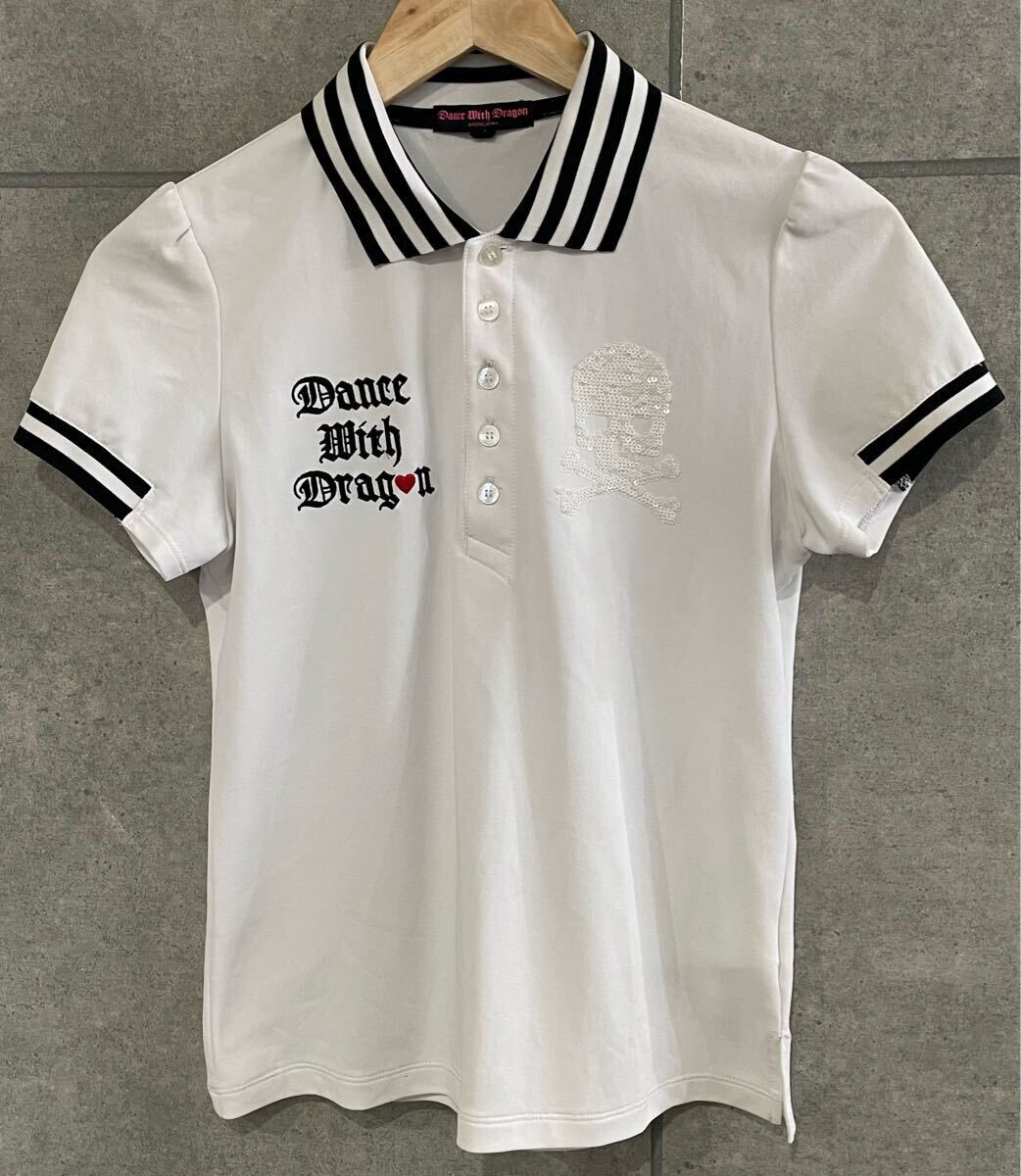 - 超キュート! DANCE WITH DRAGON ダンスウィズドラゴン スパンコール スカル 半袖ポロシャツ ホワイト 2サイズ レターパック可 ◯ 新規×