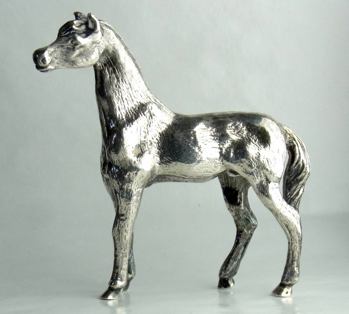 > 80’ 英国ヴィンテージ 純銀シルバー 馬のフィギュリン 総銀彫像 160g イギリス バーミンガム 高級 クロネコ宅急便60サイズ
