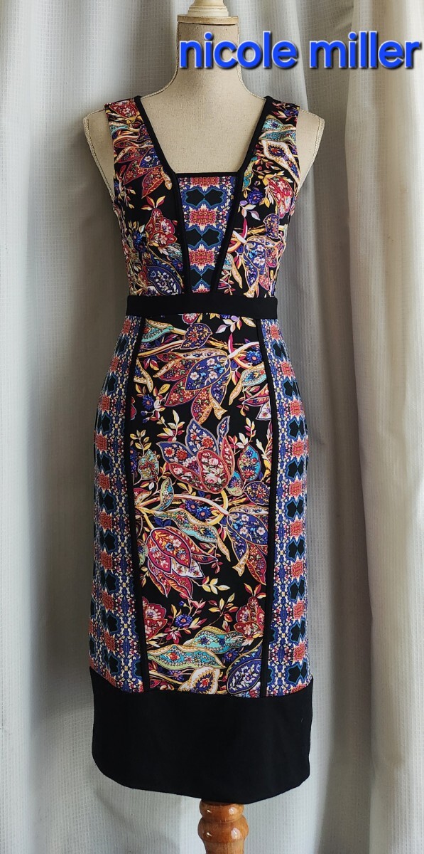- 大変美品 Nicole Miller エキゾチックなタイトワンピース ノースリーブ ひざ丈