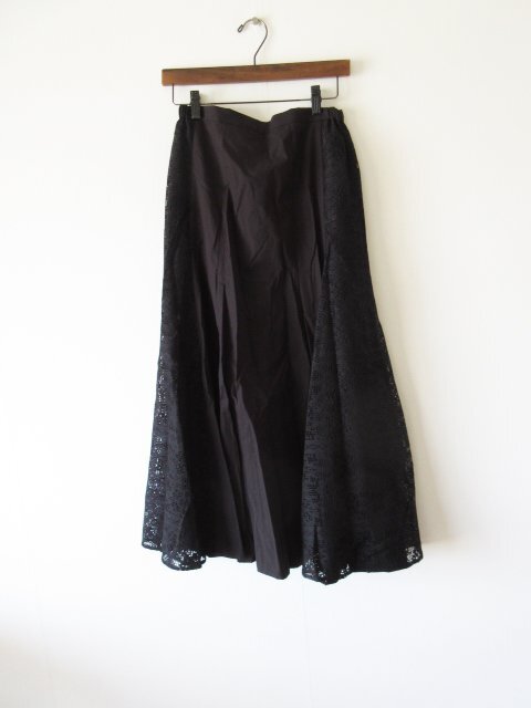> 未使用 MIDIUMISOLID / ミディウミソリッド レースコンビフレアロングスカート BLACK * レディース イージースカート