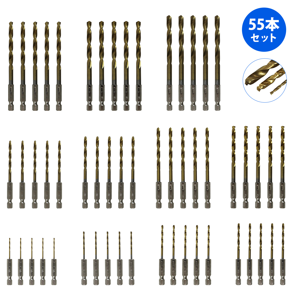 - 【55本セット 11サイズ】六角軸 ドリル HSS 鉄鋼用 電動ドリル [1.5mm - 6.5mm] ハイス鋼 穴あけ 工具 ドリルビット 鉄鋼 金