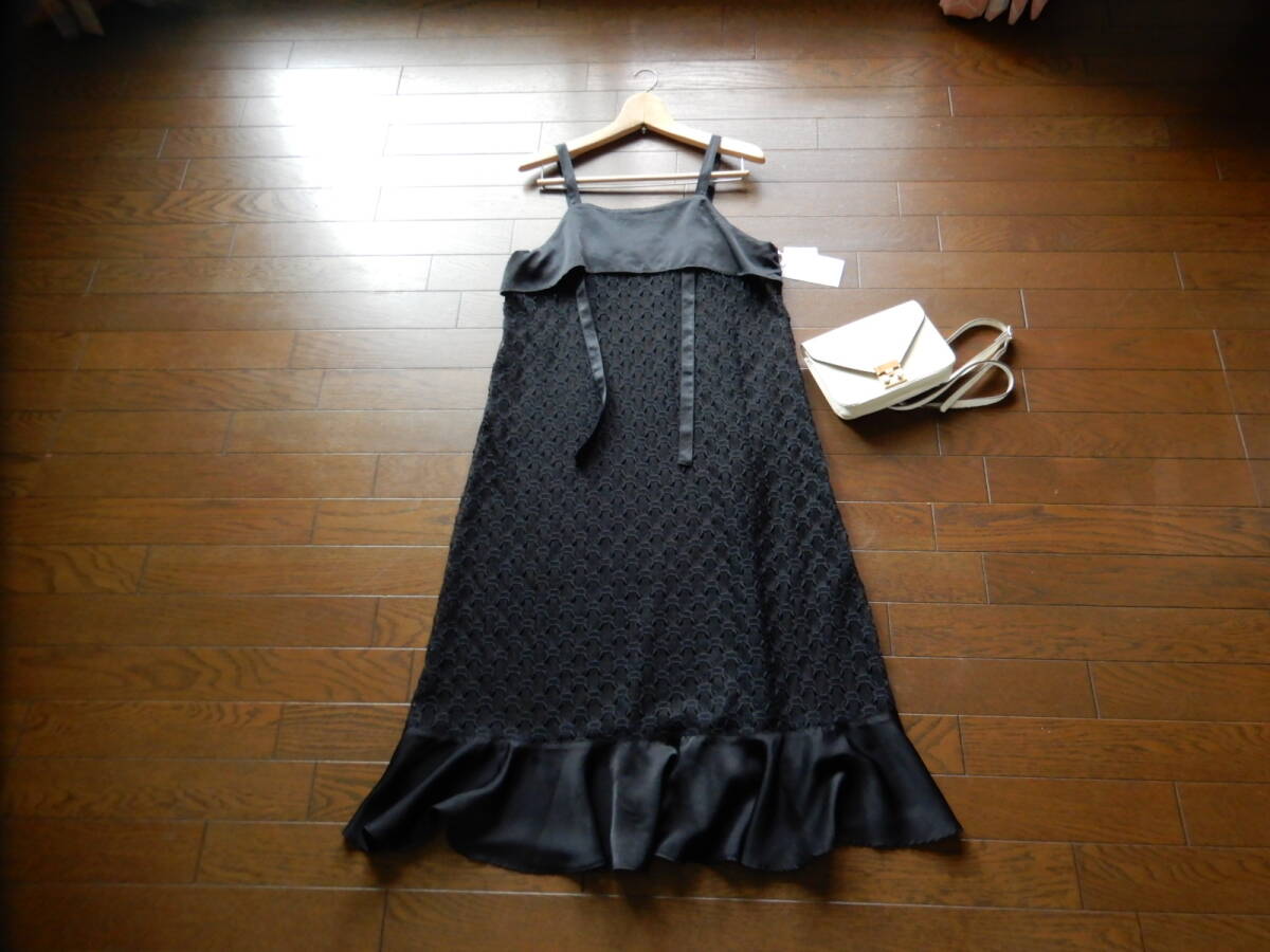 - ★新品未使用【ADAM ET ROPE'/アダムエロペ】’23-24 定2.3万 大人可愛いモード感サテンレースキャミソールロングワンピース 黒