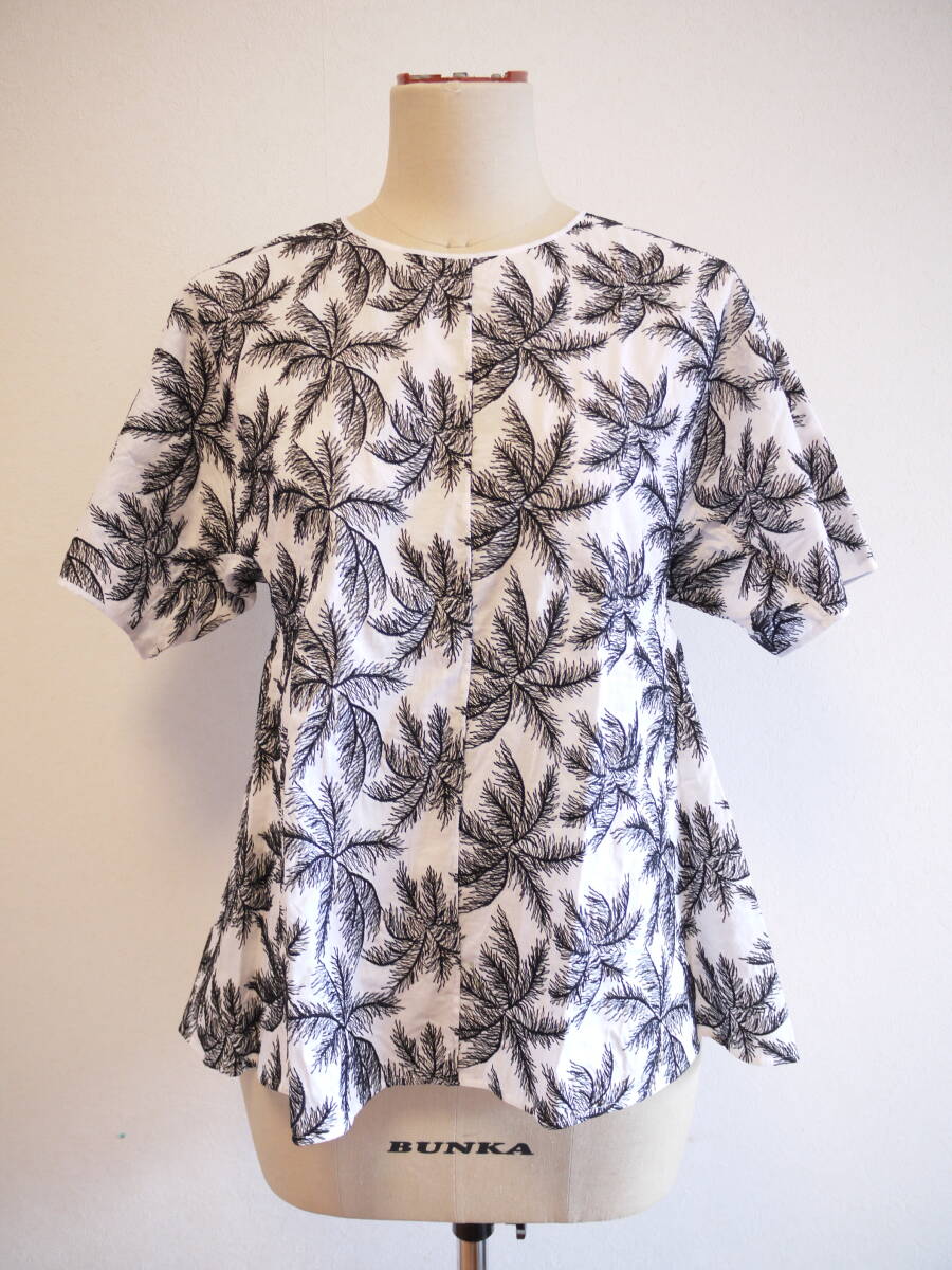 - MARLENE DAM ITALY マーレンダム ヤシ刺繍 半袖ブラウス 白 40 未使用