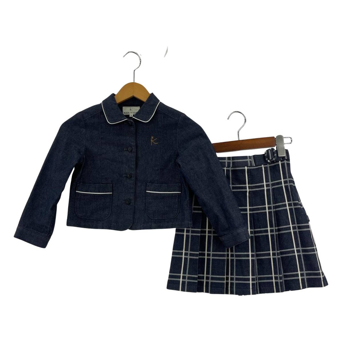 > 組曲 クミキョク チェック プリーツスカート ジャケット デニム風 セットアップ (スカート) size上M 下L/ネイビー