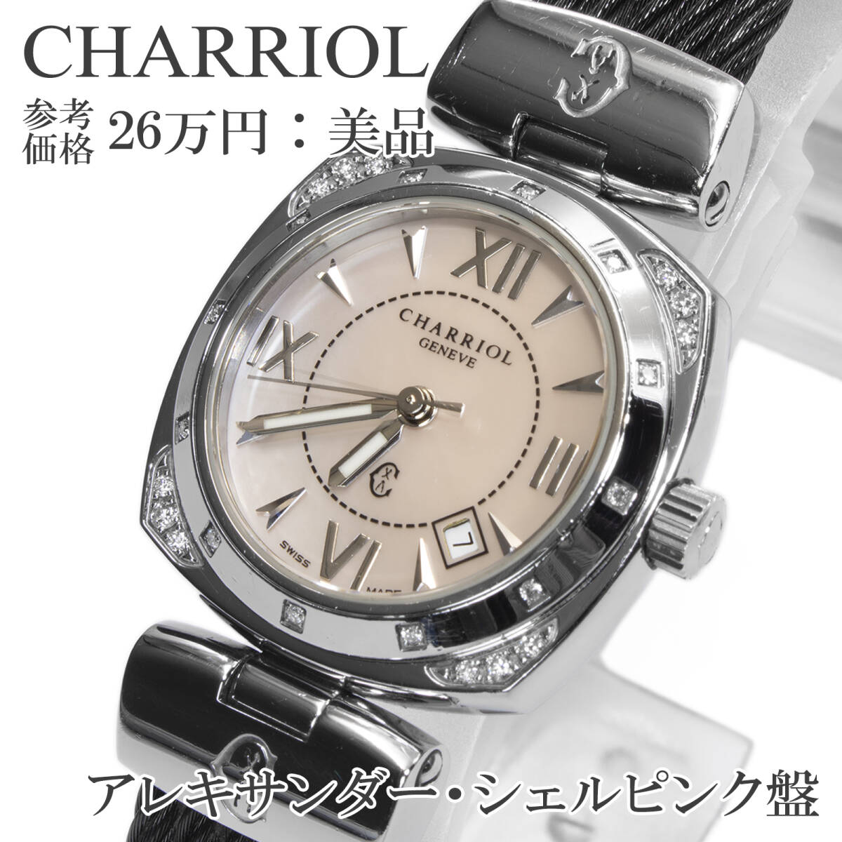 - 送料無料 シャリオール 腕時計 レディース アレキサンダー シェルピンク 黒 シルバー シェル盤 ダイヤモンド Cロゴ マーク ブランド X257