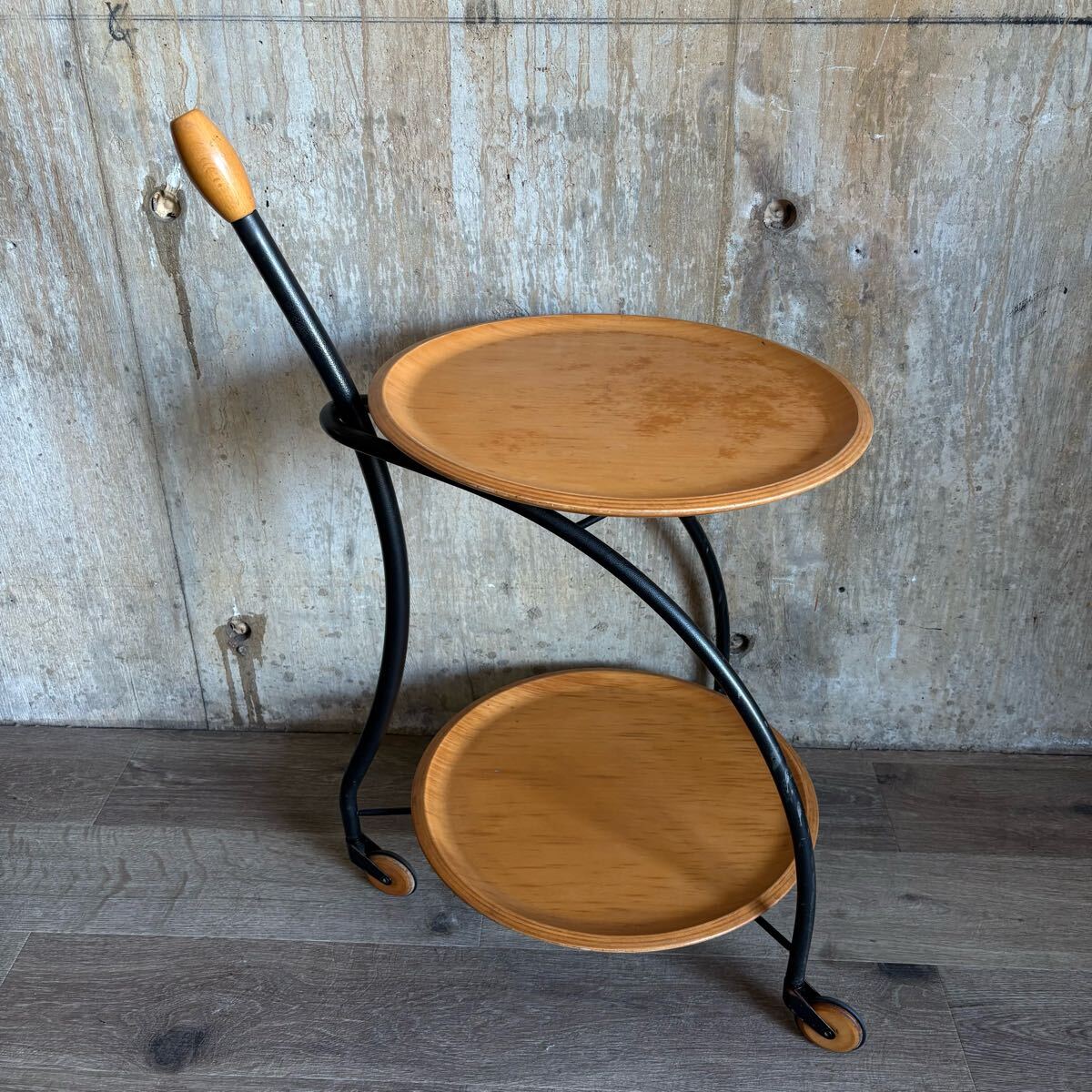 - サービスワゴン 3輪 ラウンド型 ティートロリー キッチンワゴン ① 現状品