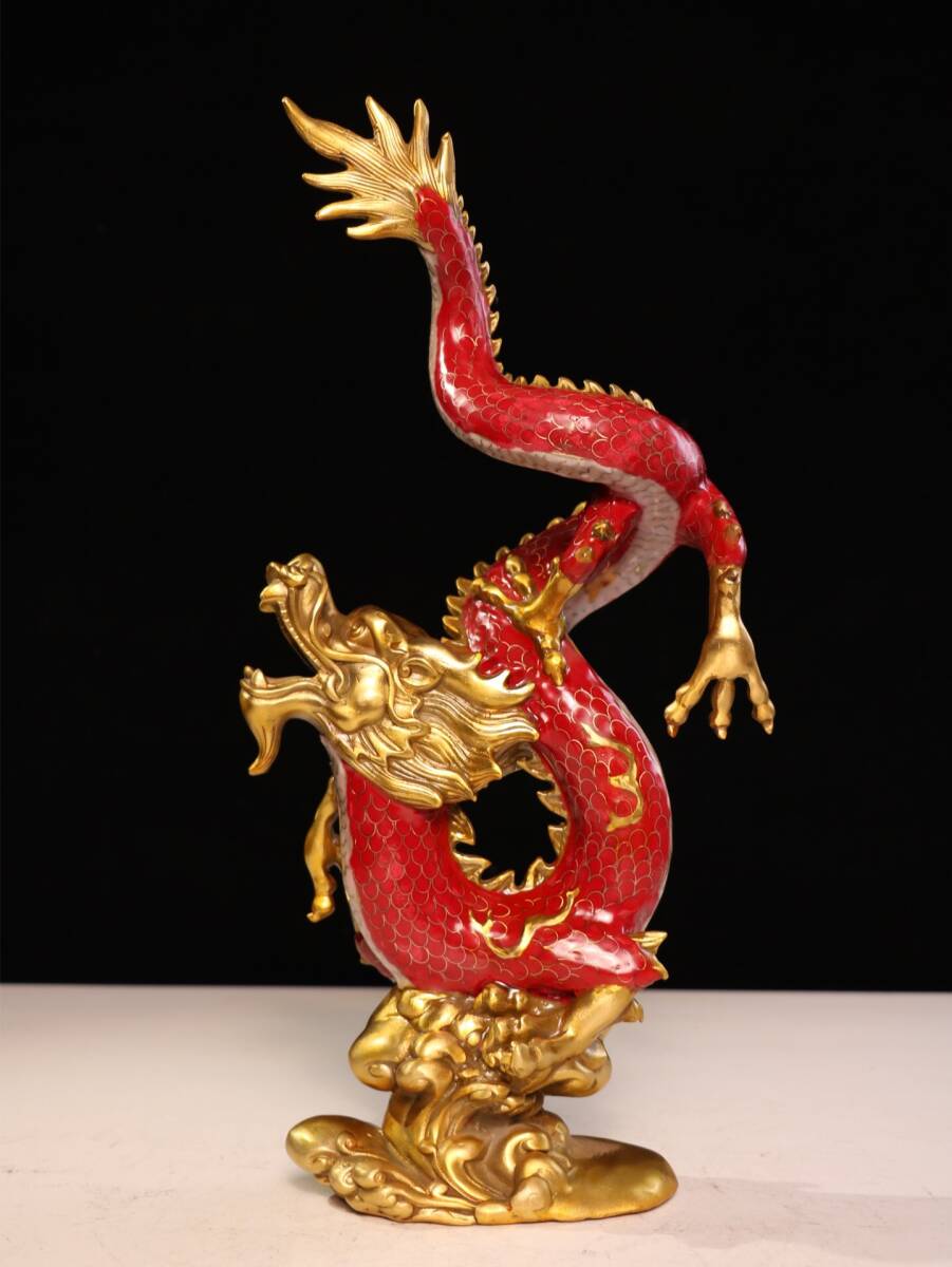 - 蔵友旧蔵出 銅製 塗金 景泰藍 琺瑯彩 龍騰盛世 希少珍品 貴重品 置物 古賞物 密宗密教 供養品 仏教美術品