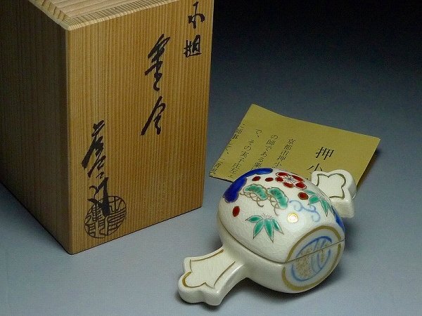 - 60TR30★茶道具 押小路窯 押小路焼 庄左エ門造 小槌 香合 香盒 共箱付 在銘品 置物 飾り 小物入れ お香入れ 香道具
