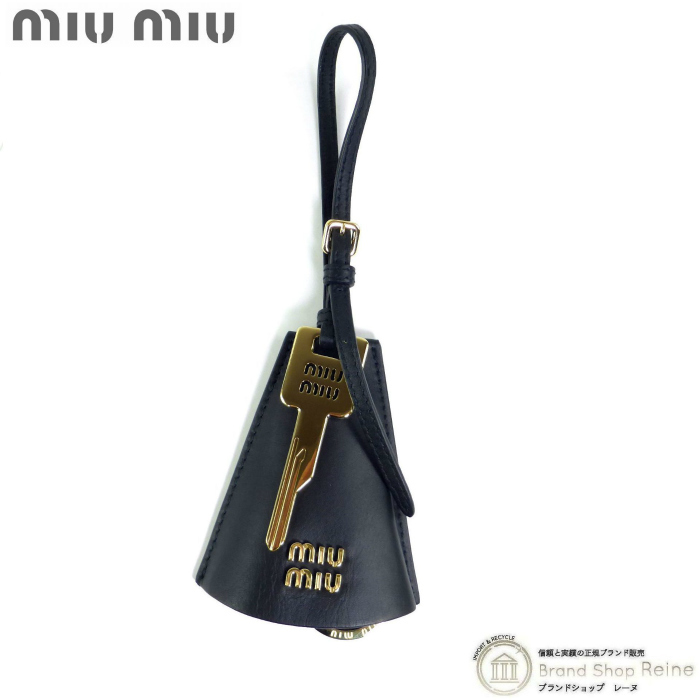 - ミュウミュウ (MIUMIU) レザートリック キーホルダー チャーム クロシェット 5TL514 ブラック(未使用品)中古