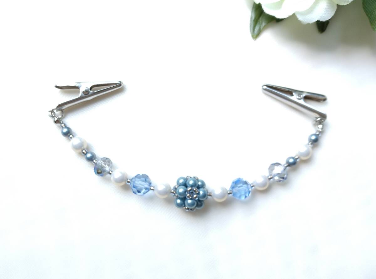 - ブルーフラワーボール ストールクリップ ショール留め ストールホルダー 羽織紐