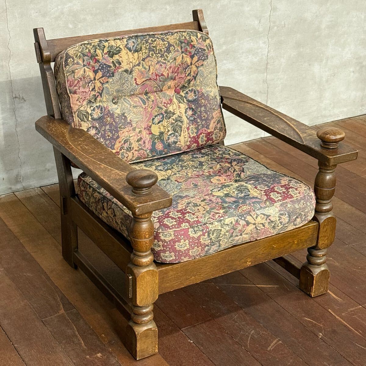 - H15K6 オールドカリモク コロニアル 1人掛けソファ アームチェア シングルソファ 1Pソファ 花柄 ファブリック ヴィンテージ