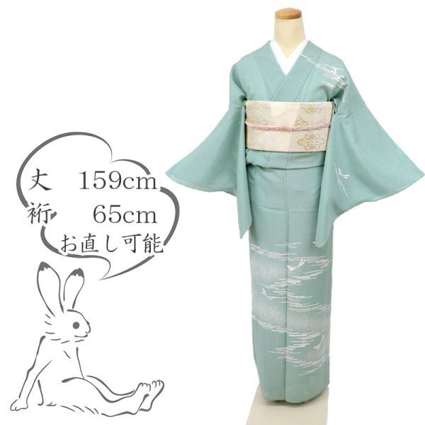 > 【訪問着】 夏着物 『絽』 水際を舞うとんぼの風景 グリーン 正絹着物 HG4-13