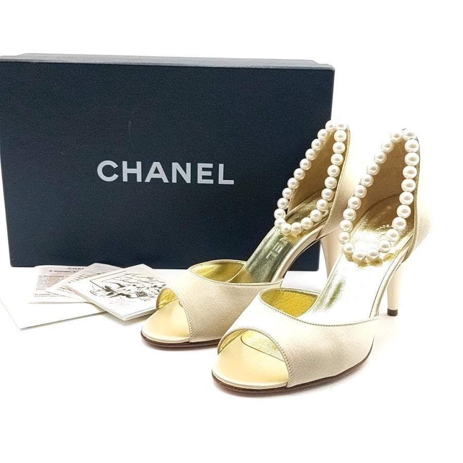 - 送料無料 美品 シャネル CHANEL パンプス サンダル パール サテン ピンヒール 伊製 イタリア製 36C レディース