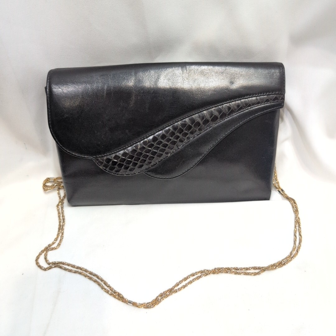 - HANAE MORI ハナエモリ 2way レザー クラッチバッグ チェーン ショルダーバッグ ハンドバッグ ブラック 黒 本革 鞄 パーティー フォーマル