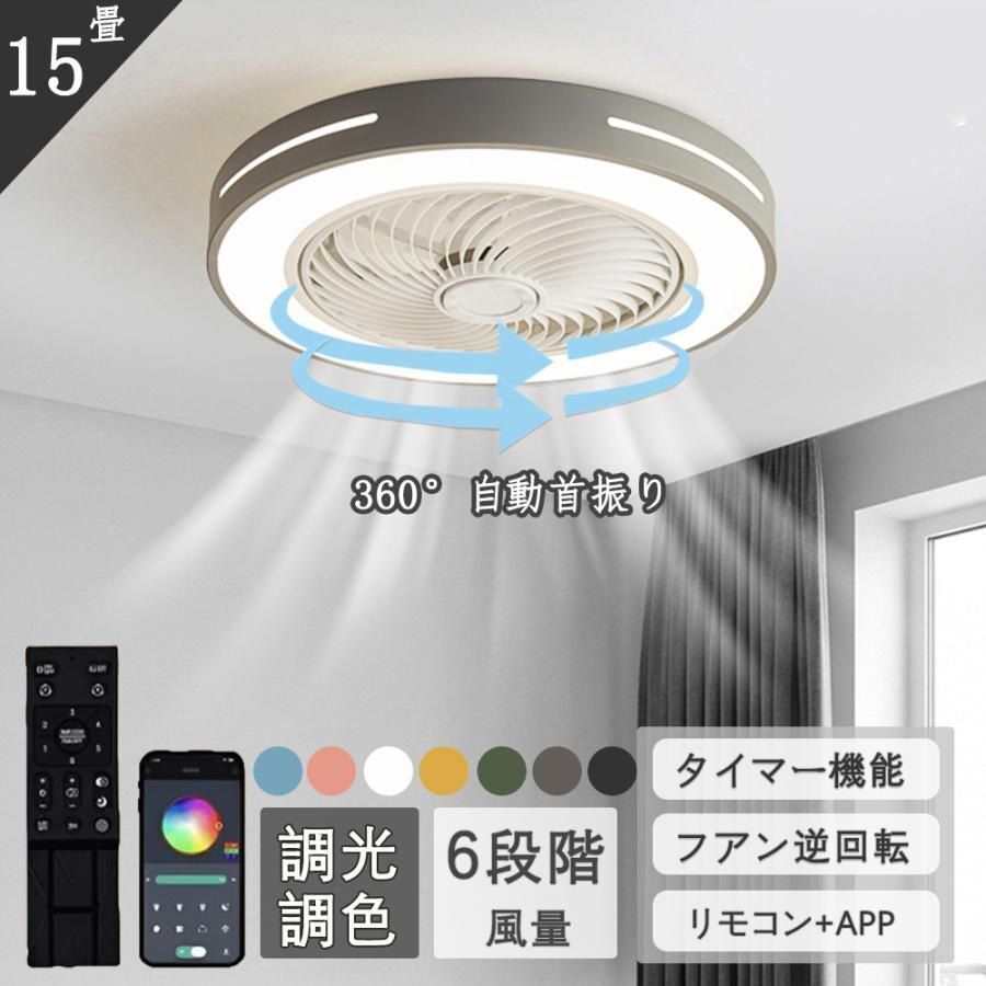- シーリングファンライト サーキュレーター シーリングライト DC シーリングファン6-15畳 風量調節 調光調色 リモコン付き LED自動首振り