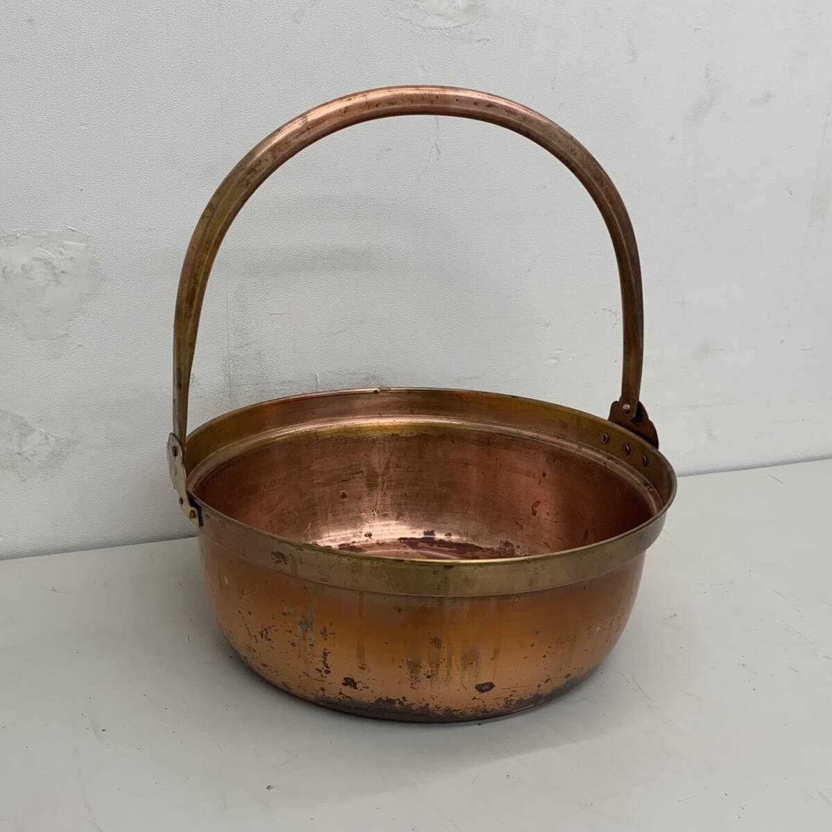 - 【中古】 A08146 銅鍋 銅山菜鍋 囲炉裏鍋 W365 x D370 x H140(+260) mm 【田舎鍋】【芋煮】【古民家 】