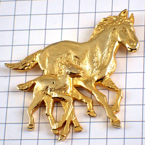 - ピンバッジ・馬の親子ゴールド金色◆フランス限定ピンズ◆レアなヴィンテージものピンバッチ