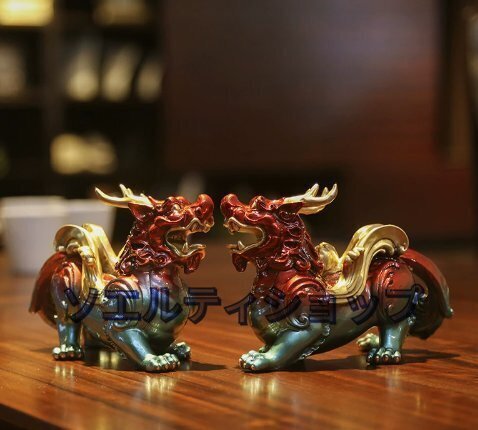 - 彩銅 貔貅 1対 置物家の居間の装飾品執務室の装飾品玄関の装飾品工芸品の置物で