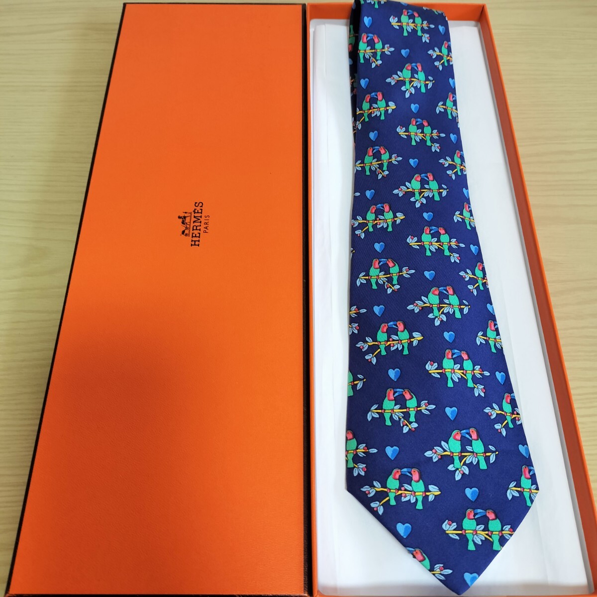 - エルメス(HERMES)青鳥キスハート模様のネクタイ