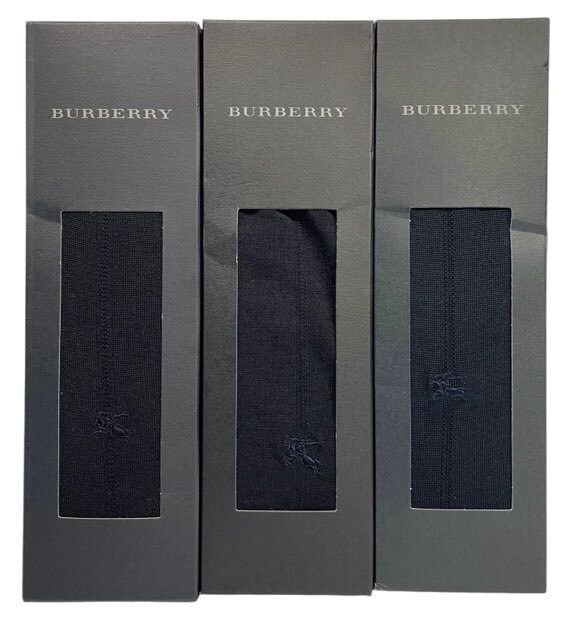 - 未使用 箱入り バーバリー ソックス 靴下 25cm 3足セット BURBERRY ネイビー 紺 日本製 メンズ 【中古】