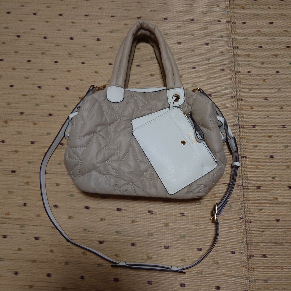 - サンヒデアキミハラ 星形キルティング2way ショルダー トートバッグ ベージュ×白
