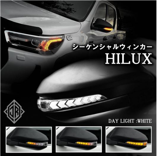 > ハイラックス GUN125 LEDドアミラーウィンカー シーケンシャル デイライト ウェルカムランプ ホワイト サイド 外装 パーツ