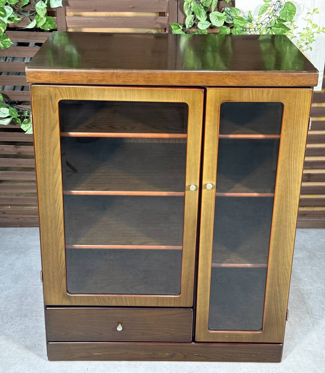 - 【木製キャビネット】①木製 キャビネット ガラス扉 食器棚 飾り棚 収納棚 引出付き 家具 棚 アンティーク調 昭和レトロ