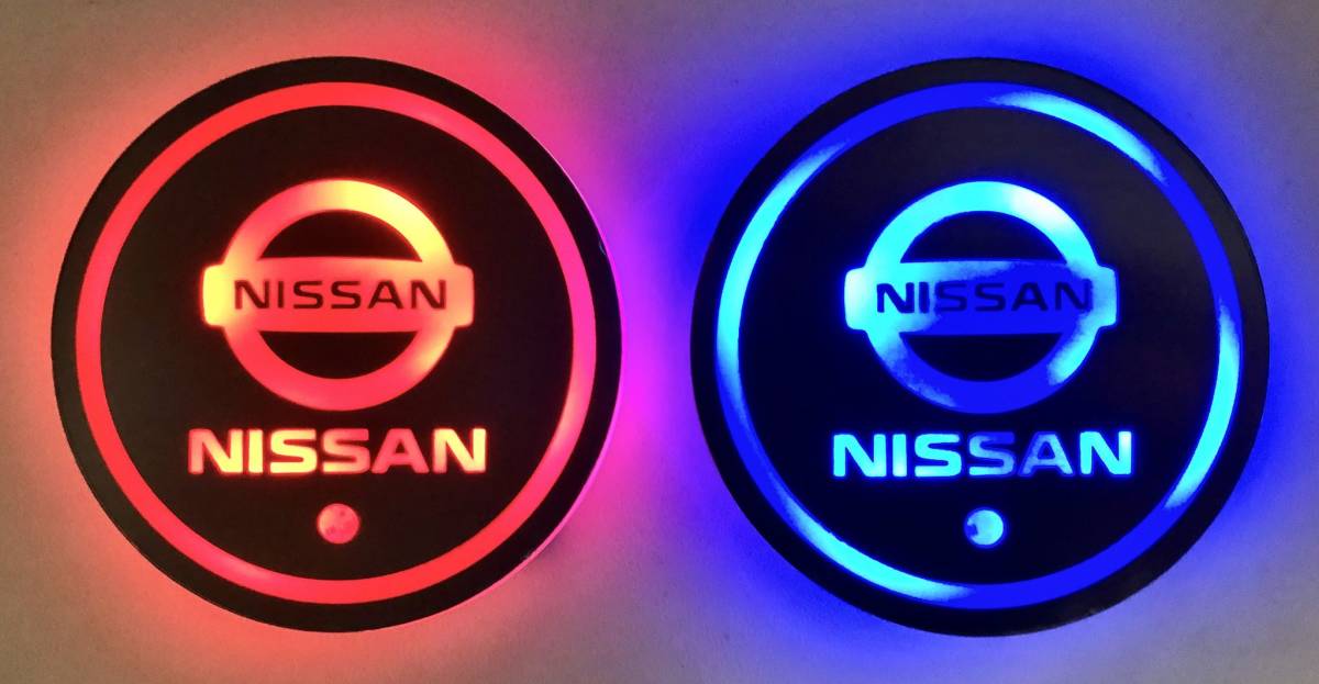 - 日産車簡単カスタム 光るLEDコースター 2個セット ドリンクホルダー 車内装アクセサリー NISSAN
