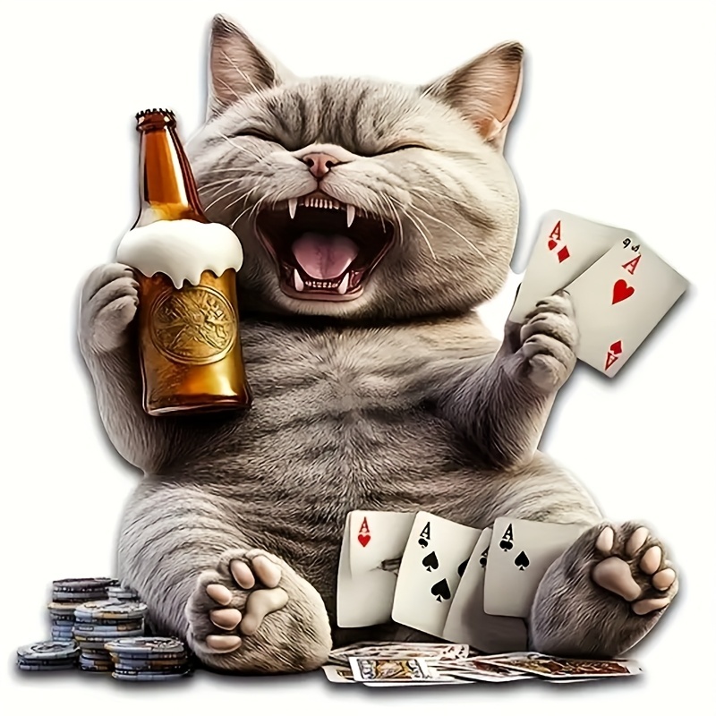 - ステッカー 豪遊するデブ猫 動物 ノートパソコン 15cm ぽっちゃり 酒を飲む猫 防水 インテリア 貼り付け シール ビニール素材 車用 t7224