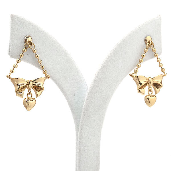 - 送料無料 本物 デザインピアス K18YGイエローゴールド リボンハートデザイン レディースアクセサリー 仕上げ済み おしゃれ 可愛い 普段使い