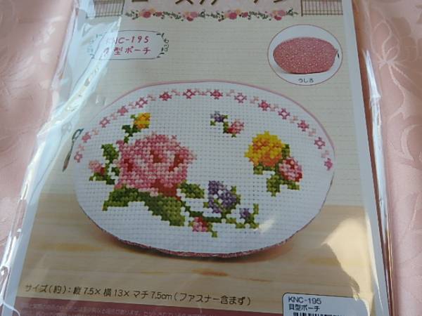 - クロスステッチで描くローズガーデン♪ 貝型ポーチ・ピンク
