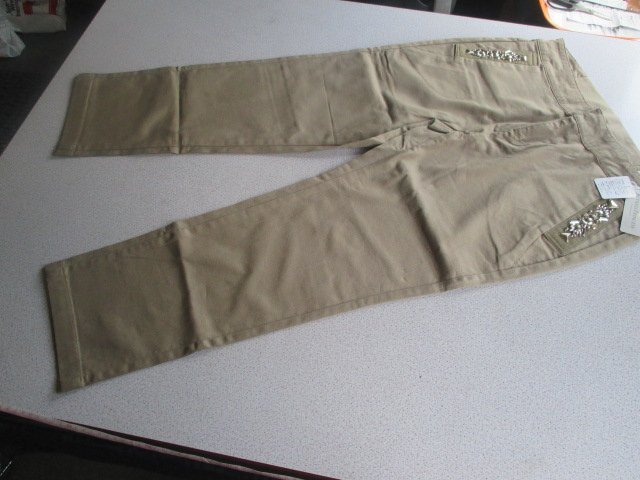 > Z6931送料無料【ユニクロ?ACTRESS PRINCESSキラキラクロップドパンツ :15号】新品 14000円 ストレッチ大きいサイズ カーキ