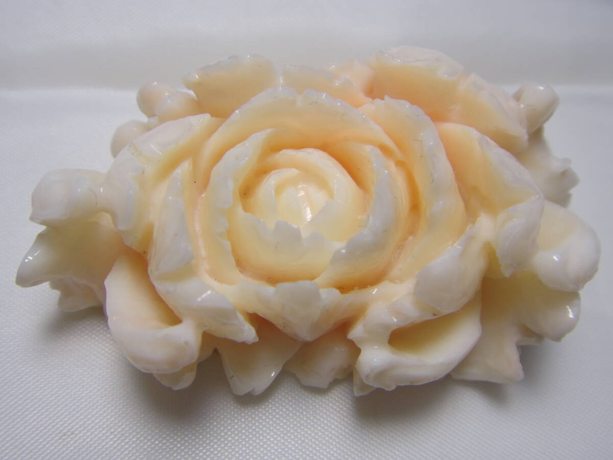 - 珊瑚 サンゴ さんご コーラル 繊細彫刻 大輪牡丹 帯留めルース 大判サイズ 約171.50ct アンティーク レトロ ヴィンテージ Y746