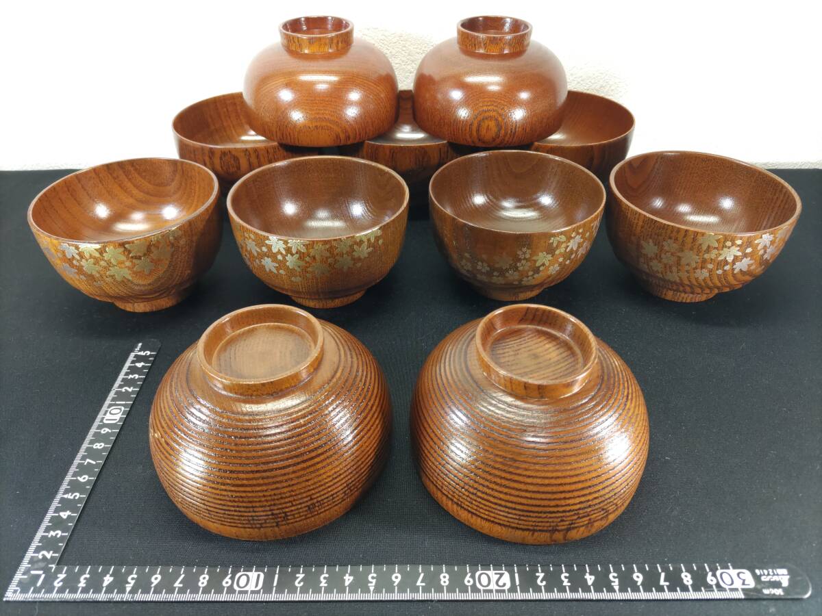- ■送料無料!■まとめて■金粉・蒔絵■漆器■汁椀■味噌汁椀■お椀■天然木■漆塗り■山中漆器■11点セット!