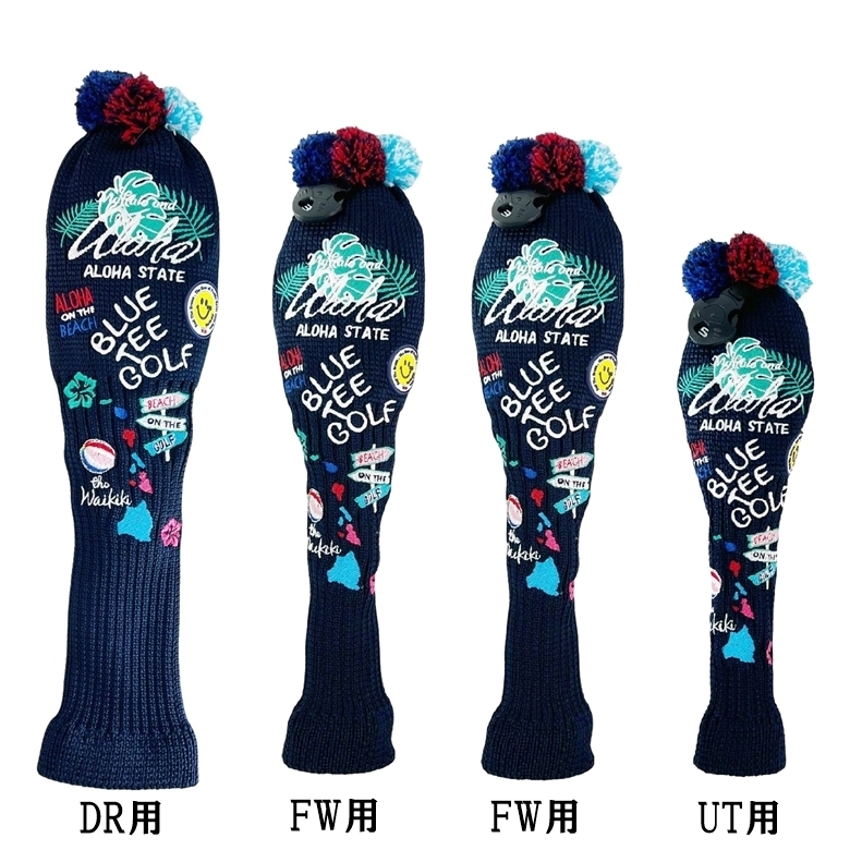 > ■オークション♪【4P:ネイビー】ブルーティーゴルフ【ニット アロハ オン ザ ビーチ】4本セットヘッドカバー BLUE TEE GOLF NALO1