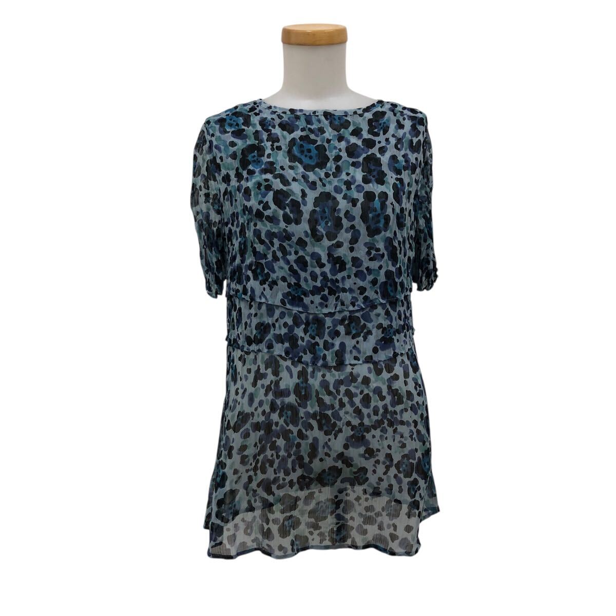 > NC310-65 EVEX by KRIZIA エヴェックス バイ クリッツィア シースルー 透け感 豹 ヒョウ 柄 プルオーバー チュニック レディース 40 ブルー