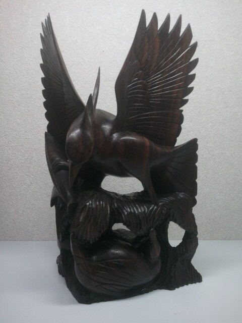 - ☆r☆【美術工芸・木工芸】木彫り鳥 唐木 木製 彫刻 オブジェ インテリア/木彫り置物