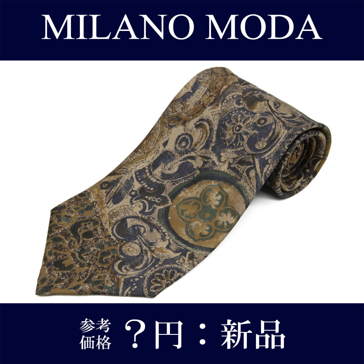 - 送料無料 MILANO MODA ネクタイ 新品 シルク ベージュ ネイビーブルー 茶色 緑 ビジネス カジュアル 紋様 マーク ブランド おしゃれ P006
