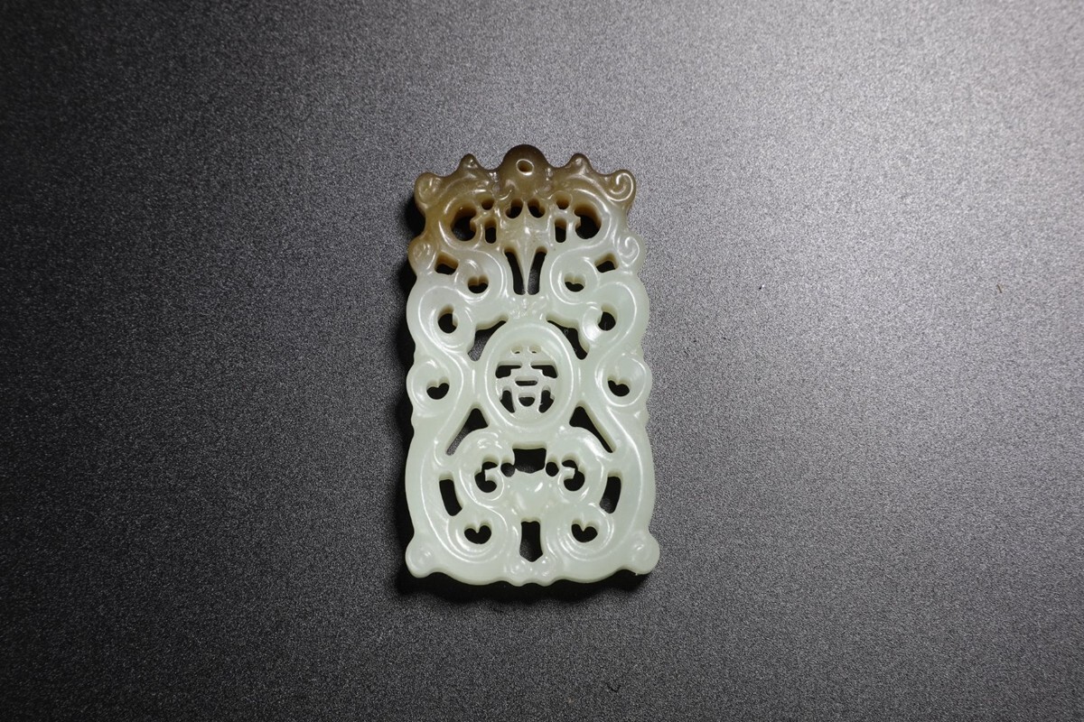 - 「清時代 和田玉 鏤空彫り 古獣紋 佩」極細工 裝身具 賞物 中国古美術 旧蔵出