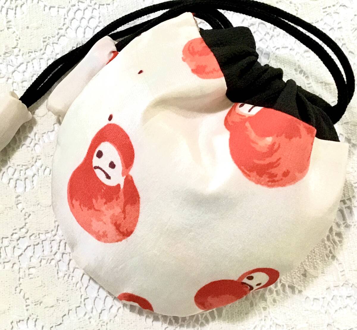 - 古布835小丸袋・絹( 可愛い達磨) 時代着物地