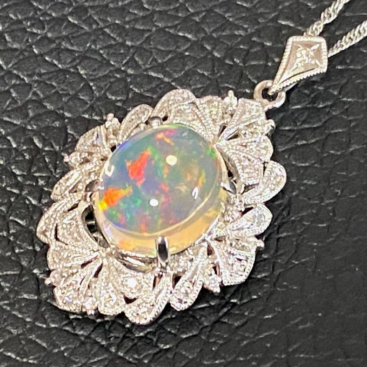 - ☆【KJC】Pt900/850(プラチナ) 天然ウォーター系オパール/ダイヤモンド 0.17ct ネックペンダント
