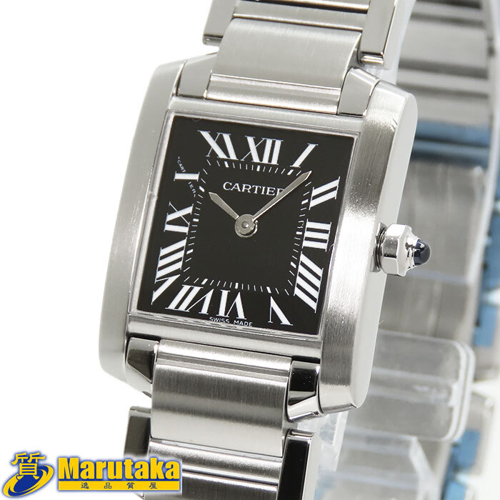 - 【カルティエ】タンクフランセーズSM アジア限定 ブラック 黒文字盤 W51026Q3 保証書付 レディース クォーツ Cartier 中古 25-33-1