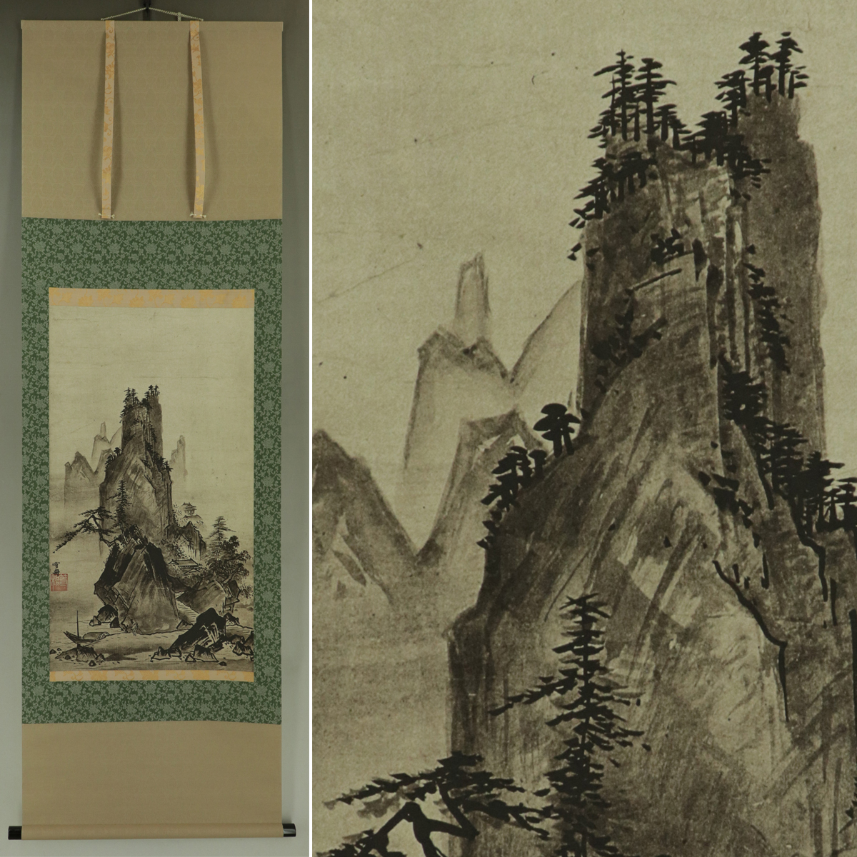 - 【巧芸】雪舟【山水図】◆紙本◆合箱◆掛軸 s06008