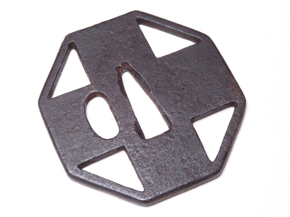 - 【10745】刀装具 (検/甲冑/刀/縁頭) 鉄地 八角 透かし 鍔(初品・買取品)