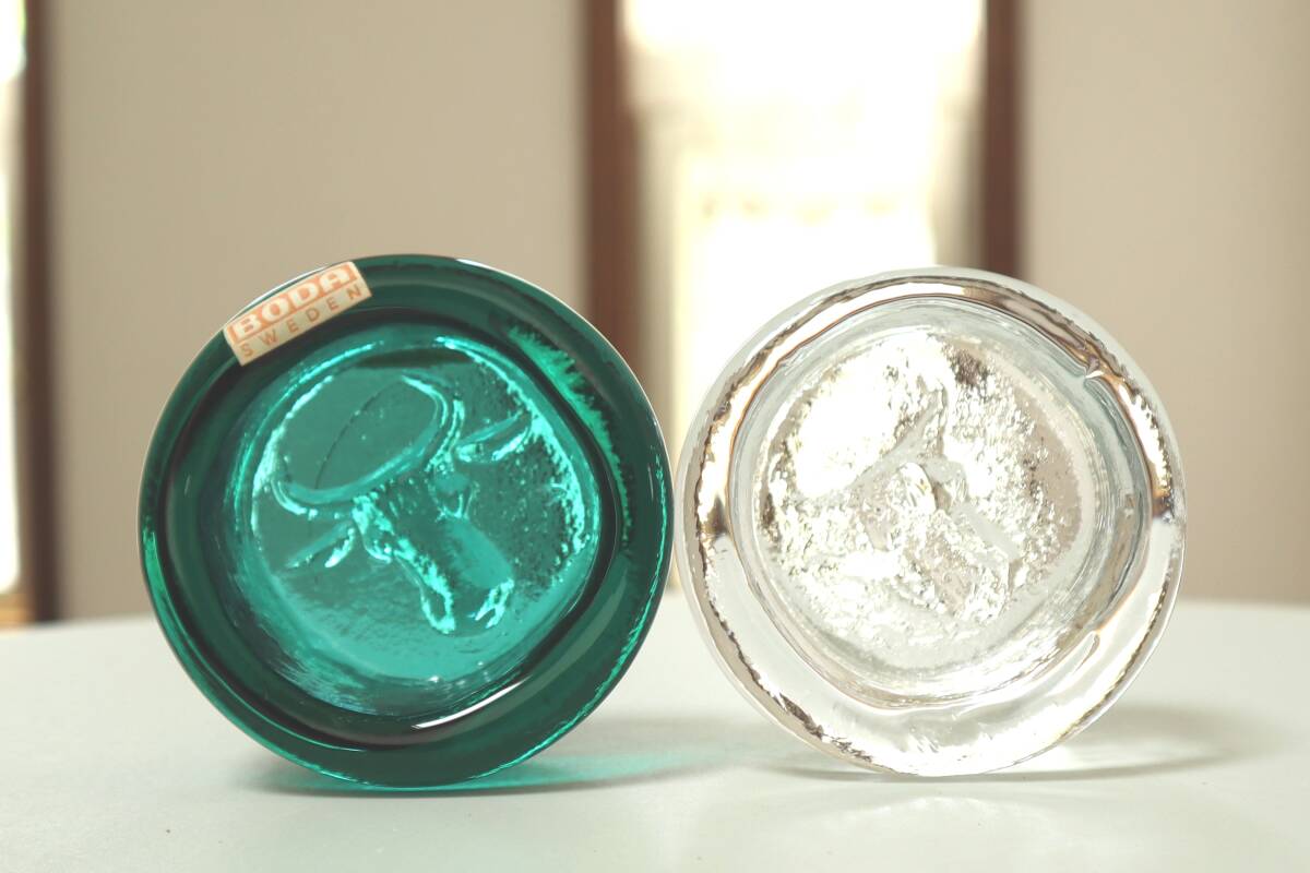 > ヴィンテージ★ウシ モチーフ型押しガラス ラウンドアシュトレイ2色セット ペーパーウェイト★Erik Hoglund エリック ホグラン★BODA ボダ